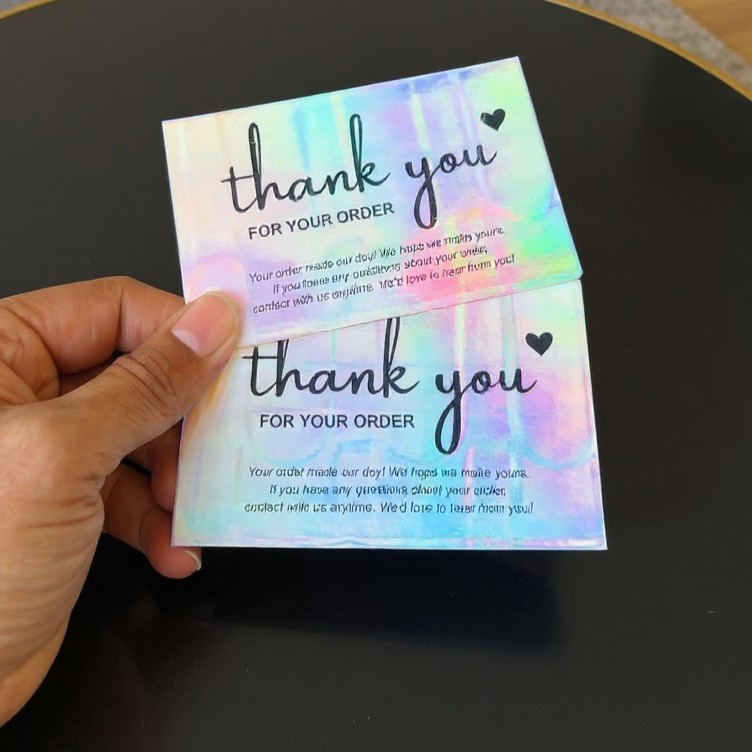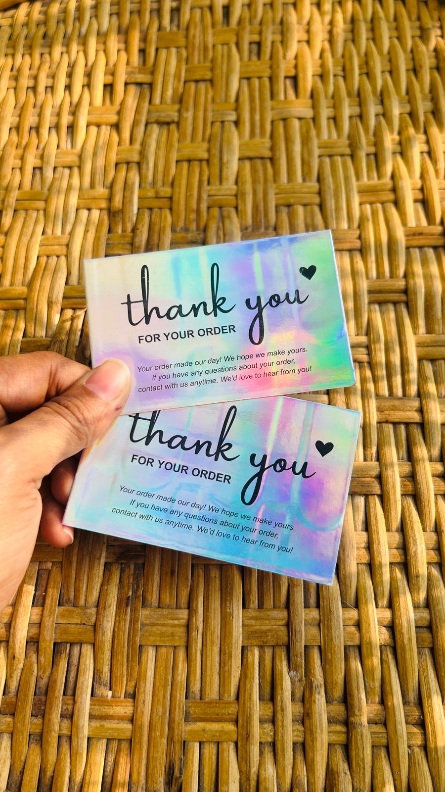 Make your brand unforgettable with these stunning Holographic “Thank You” Cards. Designed to catch the light and the attention of your customers, these cards add a high-end, magical touch to every order you ship.